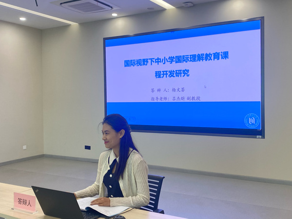 杨文荟的论文“国际视野下中小学国际理解教育课程开发研究”,围绕泰勒课程开发环节中的课程目标、课程内容、课程组织与实施,以及课程评价展开论述,通过阐述剖析全球公民国际测评实践与工具,展现国际理解教育课程评价的维度与方式。