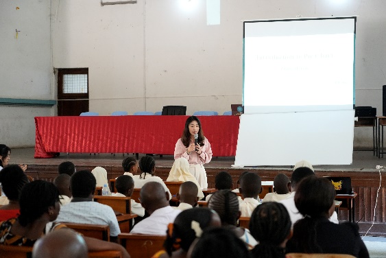 7月25日志愿团在达累斯萨拉姆市的坦巴扎中学大会堂举办了一次面向全市中小学教师的公开课展示与教研工作坊。本次公开课由上海市复旦附中国际部数学教师张闵雪老师主讲,主题为“饼图的初步认识”。此次活动吸引了达累斯萨拉姆市150余位一线教师、地区教育部门负责人以及课程开发者参与听课和讨论。此次公开课是经过精心准备和多次打磨的成果。张闵雪老师于7月17日在戴阿蒙德小学进行试教后,在跨文化教研组活动后深入反思,对课程内容进行了大幅度修改和优化。通过调整教学策略、增加互动环节,张老师成功地将复杂的数学概念以生动有趣的方式传递给学生们。