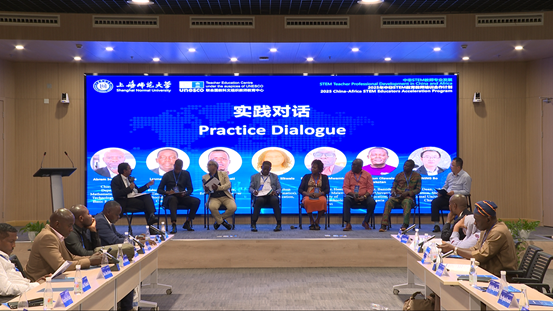 第二场是“实践对话”,南非基础教育部生物农业科学首席教育官Kanthan Govindassay Naidoo,科特迪瓦就业与社会保护部教育专员Lasme Andre Serge Akpro,卢旺达“激励、教育与赋能”组织教师Fidele Nkomati,赞比亚教育部高级课程专家(数学)Shelly Mizinga Sikwale,马拉维马拉维科技大学系主任(高级讲师)Peter Mpasho Mwamtobe,尼日利亚米德莱・奥卢米卢教育、科学与技术大学讲师Olusegun Olawale Olakotan及上海师范大学教育学院副院长宁波七位嘉宾围绕各国的STEM教育实践、STEM教师教育发展、STEM教师在课堂与学校的挑战以及改革策略等开展了热烈讨论。