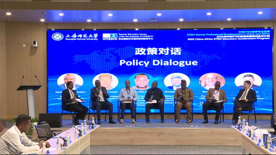 下午围绕“中非STEM教师专业发展”进行了圆桌论坛,由联合国教科文组织国际教育规划研究所前执行主任Jordan Naidoo教授主持。第一场是“政策对话”,肯尼亚教育部基于能力的课程全国实施委员会助理主任Dominic Wambua Kasimu、埃塞俄比亚教育部高等教育司研究与推广处处长Abunu Arega Yismaw、坦桑尼亚桑给巴尔教育与职业培训部中等教育处处长Mfaume Jaffar Mfaume、加纳教育部教育服务局副局长(分管质量与普及)Munawaru Issahaque、乌干达教育和体育部中等教育司首席教育官Bbuye Abubaker和联合国教科文组织教师教育中心主任张民选六位嘉宾围绕各国的STEM教育发展目标、改革举措、STEM教师发展路径、中非STEM教师发展合作等开展了热烈讨论。