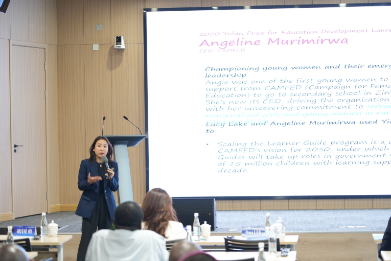 Oma Lee对一丹教育奖暨2026年全球大会展开介绍,她分享了该奖项通过支持非洲本土教育创新项目,推动建立惠及数百万儿童的普惠教育生态的愿景。