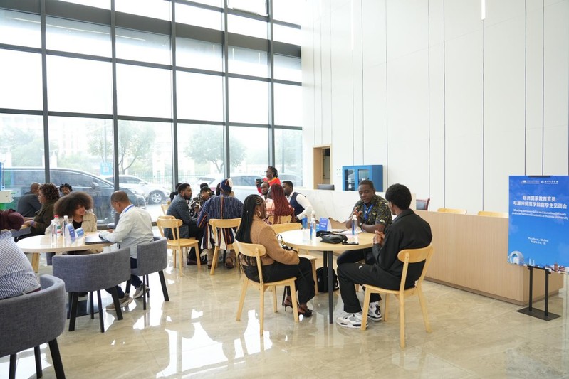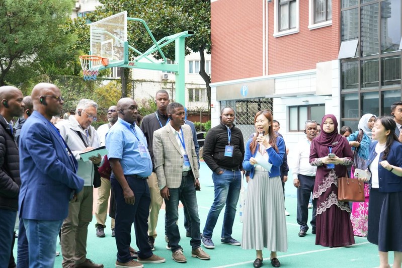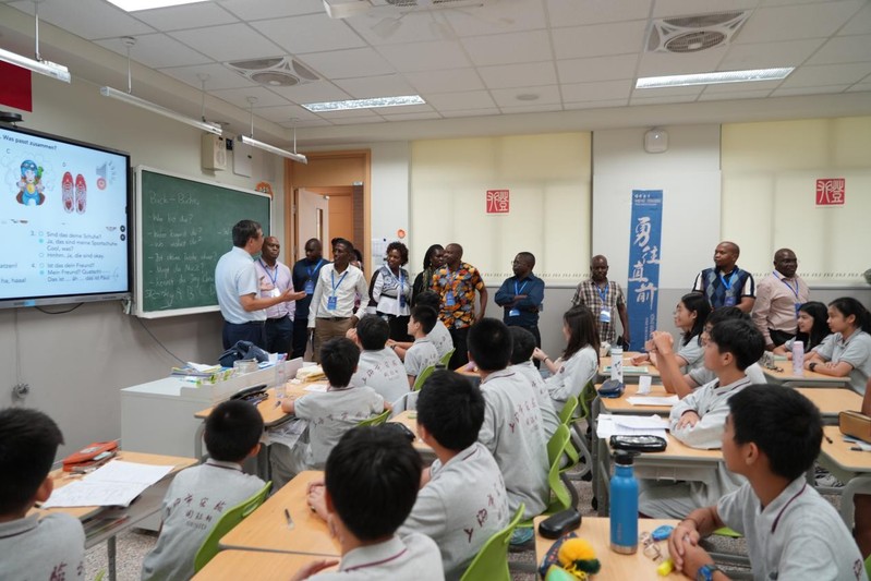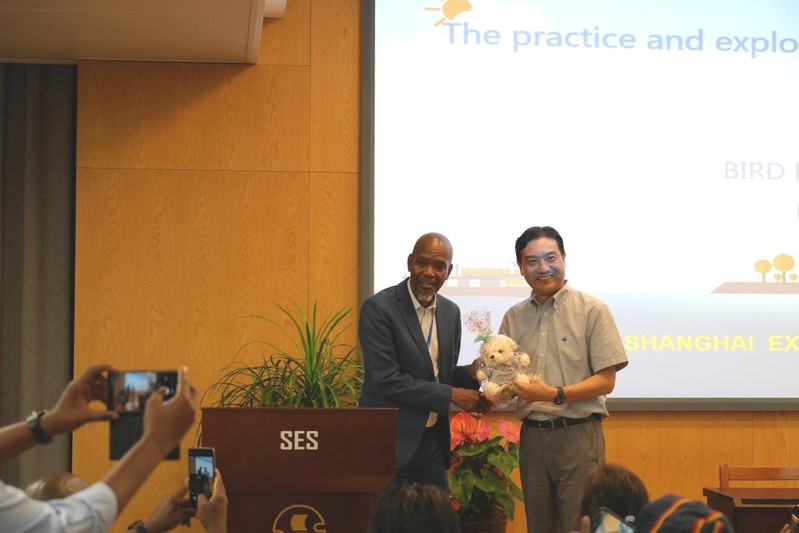 10月14日下午,“中非STEM教育教师培训合作计划”研修班(以下简称“研修班”)成员前往上海市实验学校进行参观学习,受到了上海市实验学校校长陈兴冶、校党委副书记陈慧、党政部副主任史颖芳、党政部薛梦超的热情接待。研修班成员首先参观了上海市实验学校的美丽校园,在尚立方、阳光工作室、图书馆、信息中心等校园标志性空间驻足欣赏。研修班成员还走进教室,与正在上德语课的六年级学生进行互动交流。随后,在上海市实验学校的会议中心,陈兴冶校长首先代表学校对研修班成员的到访表示热烈欢迎。陈慧副书记详细介绍了学校在STEM课程建设方面的总体布局、教育理念及培养目标;国际部STEM外教老师Ben分享了他对STEM教育的理解与教学实践,并展示了学生自主完成的经典实验视频;初中部李梦丹老师介绍了STEM课程在初中阶段的落实情况,从教学方式、课堂互动到项目化成果,全面展现了上海市实验学校在STEM教育领域的系统建设与生动实践。分享结束后,研修班成员踊跃发言,就STEM教育问题展开热烈提问和探讨。此次交流活动不仅为研修班成员带来了鲜活体验,同时也为中非教育未来合作搭建了桥梁。