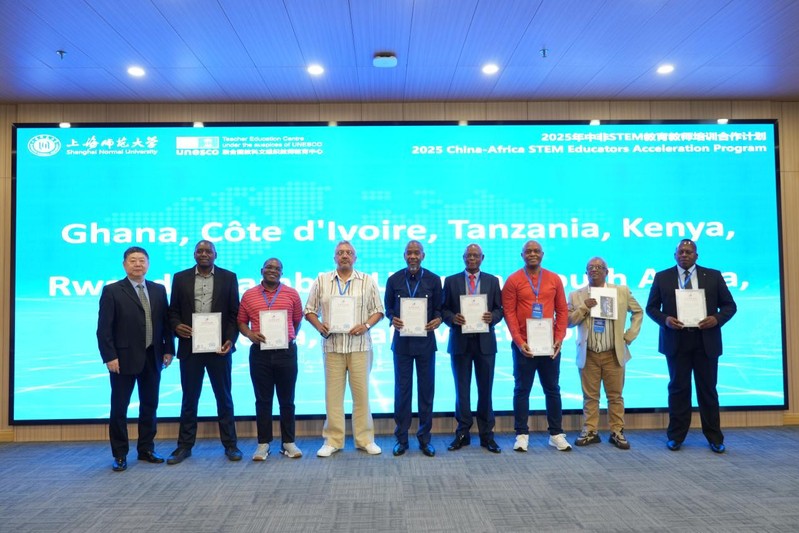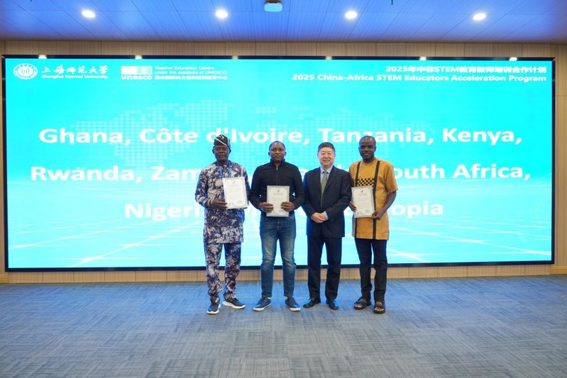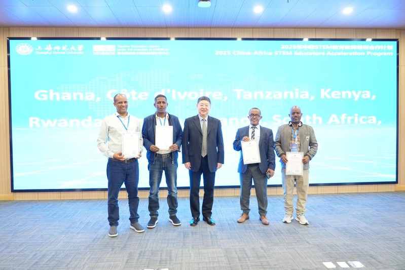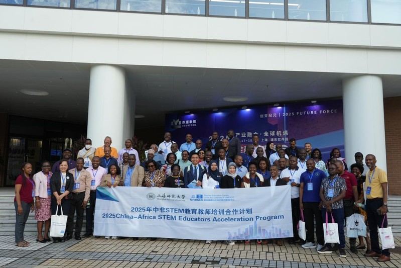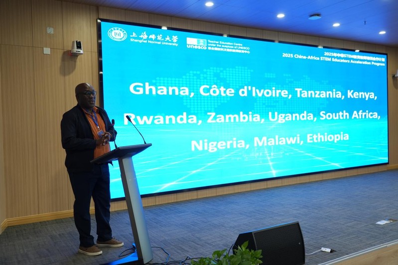 2025年10月12日至22日,“中非STEM教育教师培训合作计划”研修班在沪成功举办。来自坦桑尼亚、加纳、南非、肯尼亚、埃塞俄比亚、乌干达、卢旺达、赞比亚、尼日利亚、马拉维、科特迪瓦的非洲11个国家近60位STEM领域的非洲国家教育官员、教师教育者、专家学者及中小学教师通过专家讲座、实地参访等系列活动,扎实了解了中国开展STEM教育的理念、实践与经验,为中非STEM教育合作奠定了崭新基础。