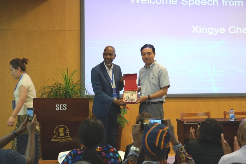21日上午,联合国教科文组织教师教育中心和上海师范大学主办的2025年“中非STEM教育教师培训合作计划”研修班在联教中心二楼的世承讲堂举行,宋佳副教授担任闭幕式主持人。首先,一段12分钟的活动精彩集锦视频,带领全场共同回顾了研修期间的难忘瞬间。随后,宋佳副教授回顾了本次项目的实施成效、合作会谈,并感谢各方对于此次项目的资源支持。接着,现场举行了证书颁发仪式,气氛真挚而热烈。来自11个非洲国家的与会代表依次分享了参与项目的学习心得与实践展望,纷纷表示此行不仅学到了专业知识,更建立了宝贵的国际友谊,言语中充满了对主办方的感谢及对未来合作的期待。志愿者代表施晨莺身着加纳代表团赠送的特色服饰,结合自身服务经历,讲述了活动中的感人瞬间,其真诚的发言引发了全场共鸣。最后,联合国教科文组织教师教育中心张民选主任为本次活动致闭幕辞,张民选教授肯定了本次研修班在推动中非STEM教育合作、促进教师专业发展方面取得的丰硕成果,并展望了未来以本项目为基石,持续深化双方在课程共建、师资培训与资源共享等领域合作的广阔前景,为整个项目画上圆满句号。