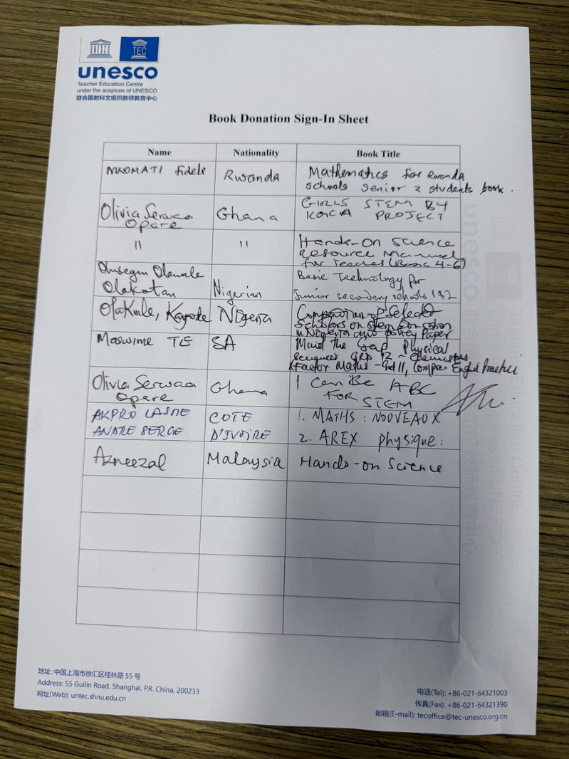 此次研修活动,还收到了来自非洲国家嘉宾代表捐赠的丰富多样的STEM相关教材、专著、教辅资料等,为了解非洲国家STEM教育实施情况提供了丰富资料。