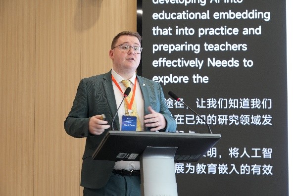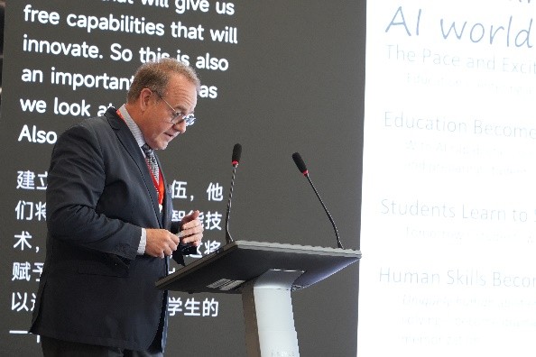 经合组织教育与技能司司长Andreas Schleicher则聚焦“教学转型的全球趋势”这一主题,认为人工智能将重塑教与学的方式,但教师的情感陪伴与深度推理能力不可替代。他强调,教师应善用人工智能提升教学效能,但要警惕学生过度依赖电子产品。基于PISA数据,他还提出教育应超越学业成绩,关注学生幸福感与韧性培养,同时通过减轻非教学负担提升教师职业幸福感。