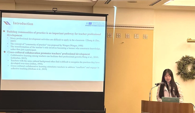 硕士生成佳蕾作题为“运用边界对象促进跨文化课例研究中的教师学习”的报告。该研究以五轮迭代优化的观课表作为边界客体,引导中国与坦桑数学教师在跨文化课例研究中从文化视角重新审视自身的教学实践。这一模式不仅有力冲击了双方教师既有的惯常教学方式,更在尊重并保持本土教学特色的同时推动了课堂教学反思与创新。