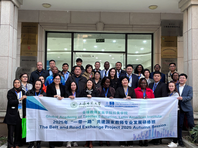 2025年11月27日至12月9日,由教育部教师工作司、教育部国际合作与交流司、上海市教育委员会指导,联合国教科文组织教师教育中心(简称“联教中心”)、上海师范大学、全球教师发展学院拉美学院主办的2025年“一带一路”共建国家教师专业发展研修班顺利举办。本次研修活动在上海与宁波两地分别举行,主要由专家讲座、成员分享、实地参访等系列活动组成,旨在促进“一带一路”共建国家教师能力建设,助力“一带一路”共建国家基础教育改革与发展,分享先进教育理念与实践经验,进一步筑牢中国与“一带一路”共建国家在教师专业发展领域的合作基石,共同促进全球教育的可持续发展。根据项目问卷反馈,本次研修项目中的系列活动获得研修班项目成员的一致高度好评。