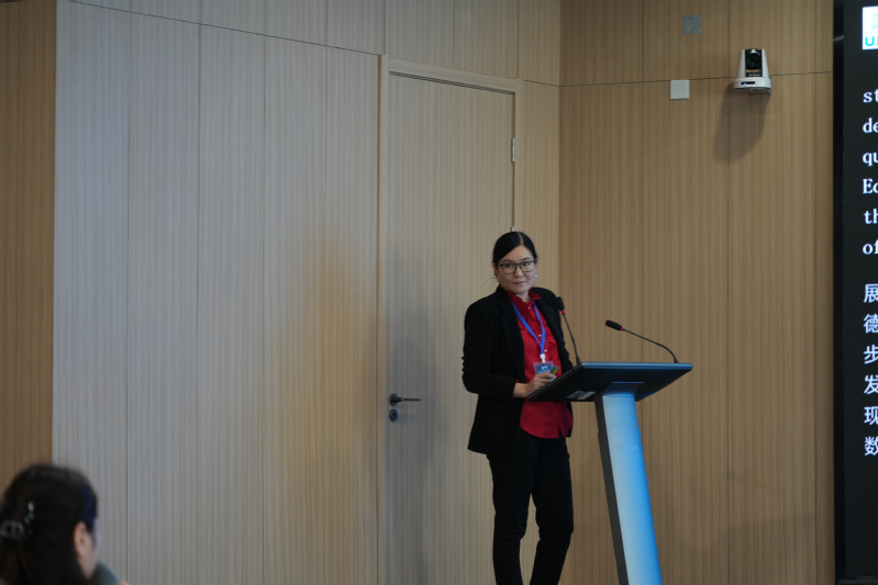联合国教科文组织阿拉木图办事处项目官员Dinara Tuyakova的发言聚焦中亚、伊朗和巴基斯坦地区,它们关注该地区教师发展支持,旨在推动变革性学习与社会转型,紧扣 SDG 4 并凸显可持续发展教育与全球公民教育的关键价值。发言介绍了 UNESCO《2030 年可持续发展教育路线图》五大优先领域,还展示了开发可持续发展教育教师手册、举办区域课程竞赛、搭建主题资源门户及实施偏远校支持、性别平等培训等实践举措,旨在赋能教师成为教育变革的核心力量,践行 “不让任何人掉队” 理念。