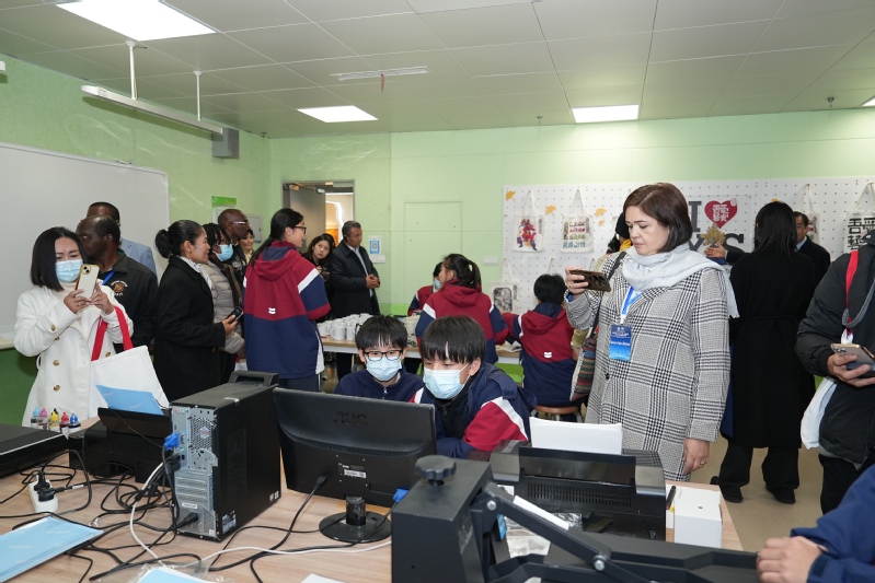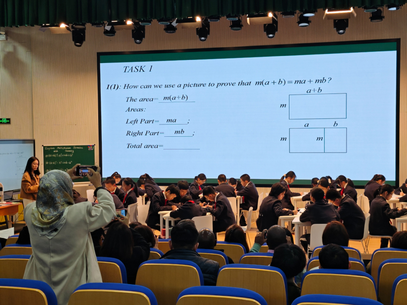 12月2日下午,研修班成员到访上海市进才实验中学。成员们首先跟随该校学生志愿者沉浸式参观校园,从大厅到百艺工坊、艺术走廊等场所,细致聆听功能布局与文化内涵的英文讲解。随后,研修班成员们观摩了七年级数学课程,直观感受该校课堂教学特色。随后,学校在会议室举行欢迎仪式与跨文化课例研讨,校领导发表致辞并分享了办学特色,授课教师与学生为研修班成员带来了一堂全英文的数学公开课,该校数学教师还与研修班成员围绕教学理念与互动方式开展深入交流。活动尾声,学校向研修班成员赠送含有中国文化元素的特色纪念品。整场活动以教育为纽带,细致展现了浦东基础教育的风采。