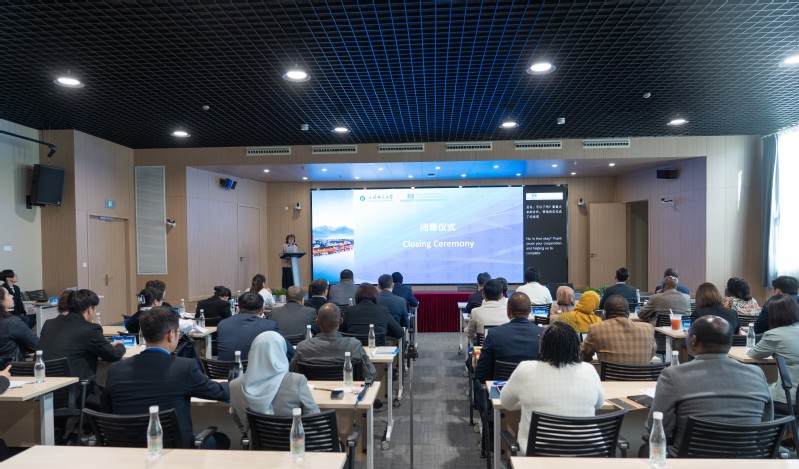 在代表发言环节后,联教中心副主任胡国勇教授发表闭幕致辞。他首先祝贺项目成员圆满完成此次研修活动,并表示此次活动旨在回应当前教师发展面临的一系列挑战,为来自世界各地的教育界同仁搭建起沟通的桥梁,集思广益,为各国教育发展中面临的共同难题寻找破解之道。他希望此次活动作为中国与各方深化教育合作的新起点,愿与各方在实践中拓展教师专业发展交流与合作的深度。最后,结业证书颁发仪式在热烈庄重的气氛中进行,项目成员依次从胡国勇教授的手中接过结业证书并合影留念。