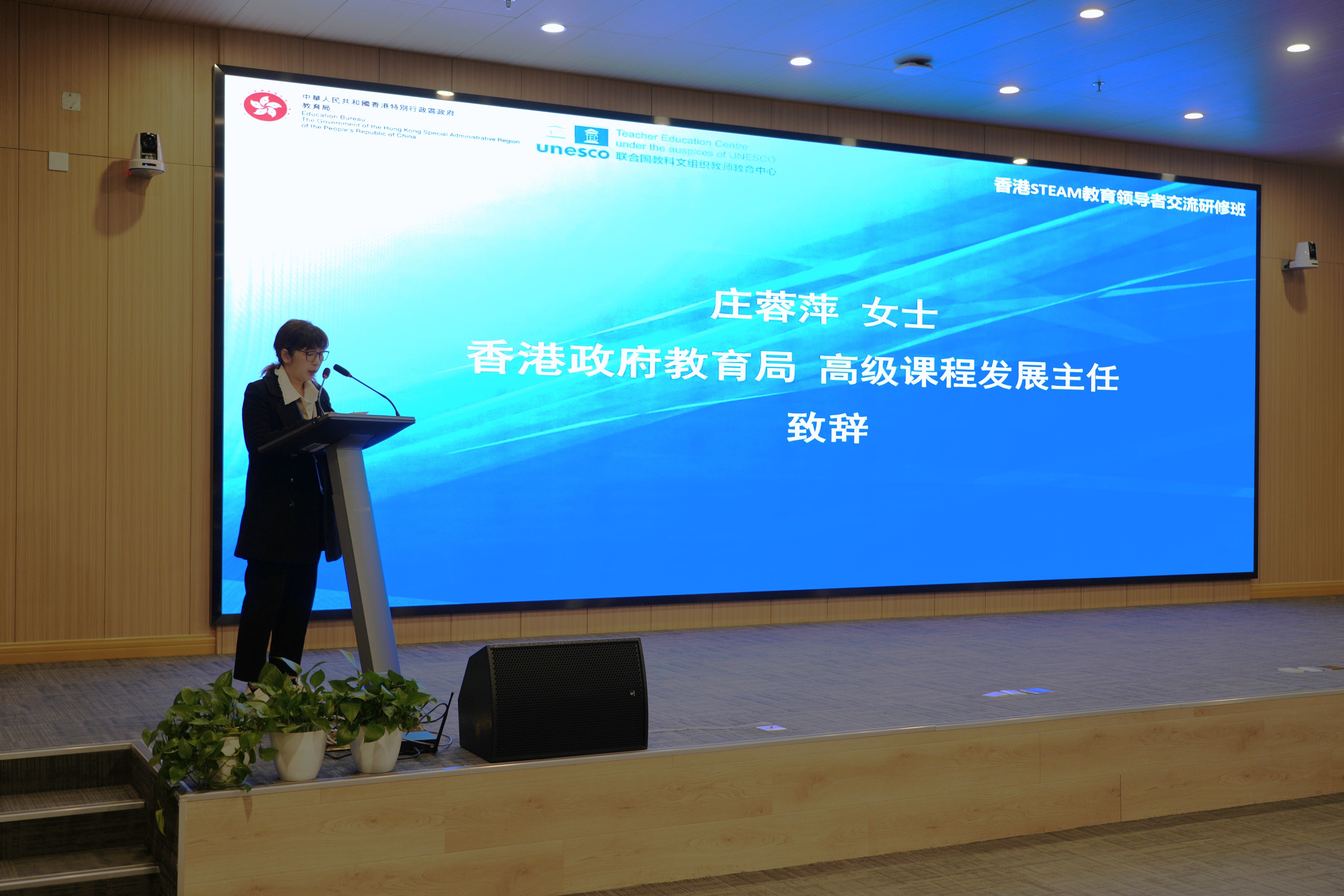 庄蓉萍女士在致辞中,首先代表香港教育局,向联合国教科文组织教师教育中心致以诚挚谢意,并向全体与会人员表示热烈欢迎。她表示,本次研修活动为大家拓宽教育视野、树立大格局教育理念提供了宝贵契机,期望各位同仁以此为契机,进一步激发教育创新思路,将研修成果转化为实际的教学策略与实践,为学生提供更优质的教育。